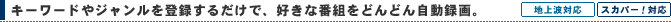 「おまかせ・まる録2」は、いちいち録画予約をしなくても、好きな番組を集めておいてくれる先進の機能。好みのキーワードを登録するだけで、地上波放送とスカイパーフェクTV