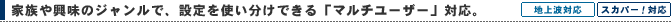 「マルチユーザー」対応により、「おまかせ・まる録2」の設定は、3組(3人)まで可能。設定は、それぞれ個別の嗜好として管理されます。また、見たい番組を手軽に検索できる「MyCast ビュー」では、3組の設定がそのままカテゴリーになるので、家族や自分の興味のジャンルで設定を使い分けると便利です。