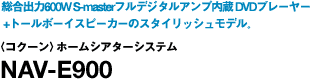 NAV-E900:フロント/センター/リア/サブウーファー100W×6ch(3Ω、JEITA)