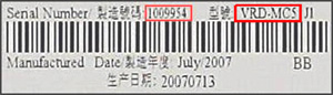 製造番号・型名 記載部 拡大