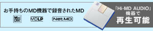 従来のMD機器で録音されたミニディスクも「Hi-MD AUDIO」機器で再生できます。