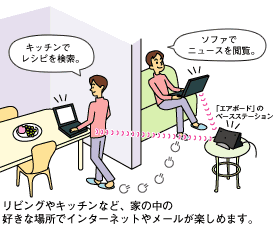 ワイヤレスLANアクセスポイント機能では、エアボードのモニターの他に15台のパソコンを同時にお楽しみいただけます。 |