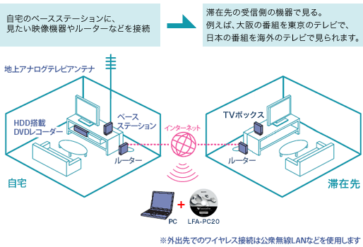 ロケーションフリープレイヤーを楽しむためのPCがすでに海外などの外出先にある場合でも、自宅にあるベースステーションにインターネット経由で機器登録することができます。