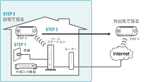 ベースステーションにテレビアンテナ、外部入力機器、回線を接続し、電源を入れる