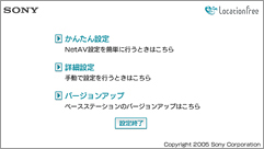 NetAVテスト画面で「成功しました」と表示されたら、[メニュー]を選んで ボタンを押す。 最初の画面に戻ります。[設定終了]を選んで ボタンを押したあと、 ボタンを押してインターネットブラウザを終了させてください。