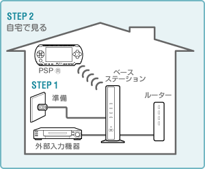 | ベースステーションにつないだ外部機器を画面上のリモコンで操作するための設定をします。なお、設定には"メモリースティックデュオ"が必要です。PSP®にメモリースティックデュオを入れてください。 |