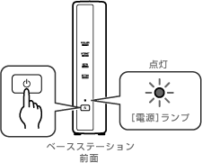 ベースステーションの電源が入った状態で、セットアップモードランプが点滅し始めるまで押し続けます。 |