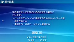 ロケーションフリーテレビを使うための設定画面が表示されます。方向キー右で次の画面に進みます。 |