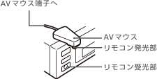 外部入力機器のリモコン受光部に向けて、AVマウスをつなぐ。 |