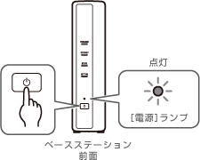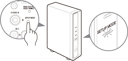 | ベースステーション背面のセットアップモードボタンを、前面のセットアップモードランプが点滅するまで押し続ける。 |