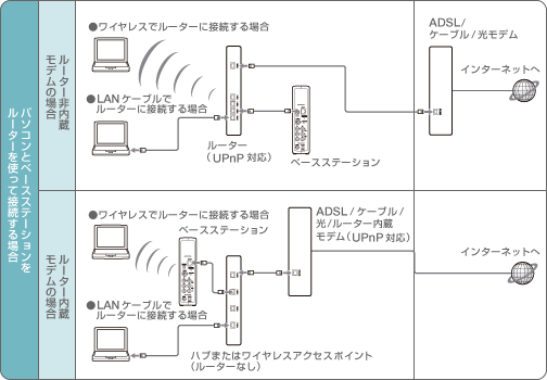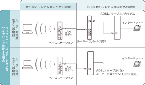 ルーター経由でベースステーションに接続する場合は、ベースステーションをセットアップモードにする(STEP2参照)。 |