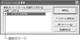 セットアップモードランプが点滅している間に、「状態」に緑色のマークがついたベースステーションを選び、[接続]をクリックする。
