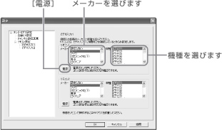 [電源]を何回かクリックしてもつないだ機器の電源が入/切しない場合は、メーカーや機種が正しく選ばれているかどうか確認してください。 |