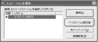 ロケーションフリープレイヤーを起動し、「ベースステーションの選択」画面にある「ベースステーション設定」をクリックする。 |