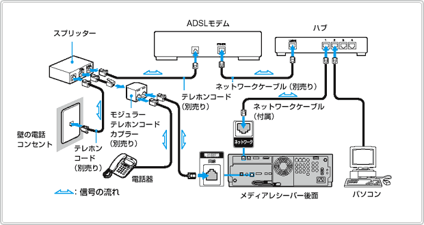 契約によっては、本機やパソコンなどの端末を複数台接続できないことがあります。ご利用のADSL回線事業者、ケーブルテレビ会社、FTTH回線事業者、プロバイダーにお問い合わせください。