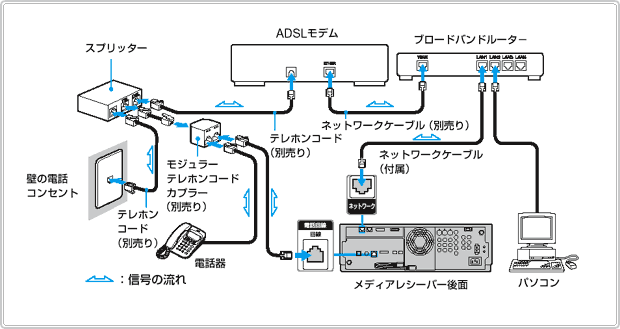 契約によっては、本機やパソコンなどの端末を複数台接続できないことがあります。ご利用のADSL回線事業者、ケーブルテレビ会社、FTTH回線事業者、プロバイダーにお問い合わせください。