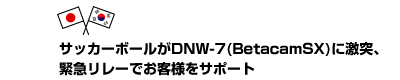 新潟スタジアムにおいてはサッカーボールがDNW-7(BetacamSX)に激突、マイク周辺が破損する事態が発生。