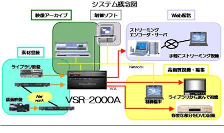 複数教室からの講義映像などを高画質でアーカイブします。アーカイブされた映像は付加情報とともにデータベースで管理。検索機能も充実しています。
