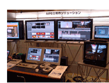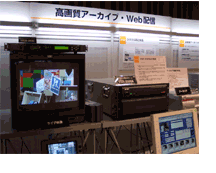 今回の展示では、映像素材をe-VTRからネットワーク経由で、Xpriノンリニア編集システムへMPEGファイルのまま取り込み編集するデモを行いました。