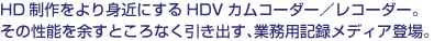 今回のHDVカムコーダーとレコーダーの発売により、HD制作環境がより身近なものになり、HDコンテンツ制作の高まる需要に対応することができます。 |
