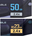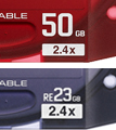 2層ディスクは、カートリッジの色にあわせて、ケースカードにも赤色の表示をあしらいました。 |