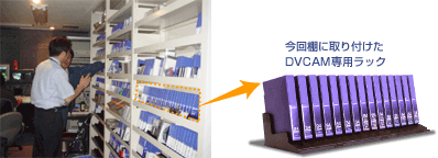 また、少しでも多くのテープを入れられる様に、メディアのサイズをDVCAMへと小さくしました。棚の納品に合わせて、すぐに必要なものはDVCAMへダビングをしたんですよ! |