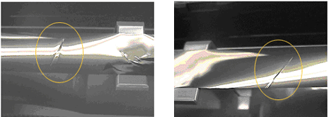 ドロップアウトより太い幅のノイズとなり、画面の上から下へノイズが流れる場合が多い