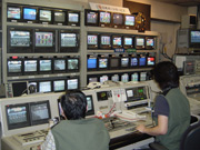 現在、Anycast Stationにはカメラが2台(旋回型3CCDカラービデオカメラBRC-300、DVCAMカムコーダーDSR-250)、VTRが2台(DVCAMレコーダーDSR-11)、そしてインタビュアー用と選手用の2本のマイクが接続され、運用されています。レースが終了するとともに、1台のVTRにレースの実況映像を収録、もう1台にレース勝者の航走シーンをフリーズ静止画として記録、ほかにタイトル画やスタート写真などの静止画が用意され、スタンバイ完了となります。