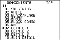 −の値に設定する(ディテールレベルを下げる)と、映像信号の水平(H)/ 垂直(V) のエッジ部分の信号が小さくなり、映像が柔らかいイメージになります。
