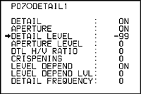 元の信号に付加される輪郭(ディテール)信号の度合いのことで、ソニーのカメラのPAINT メニューDETAIL1 ページでは-99から+99 の範囲で調整することができます。