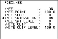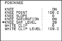 | 2)KNEE SATURATION を ON(デフォルト)に設定します。 |