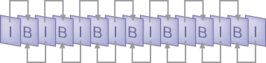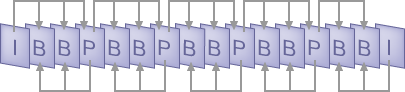 | GOPを長くすれば、データ量が小さくなり圧縮率が高くなりますが、ダビング時の品質維持とレスポンスの良いフレーム精度の編集が困難となります。 |