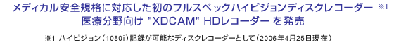 本機は、これら医療現場のニーズに対応するため、放送業務用ディスク規格である"XDCAM" HDを採用、高画質・高精彩なハイビジョンでの動画記録やディスクによる大容量の映像記録保存などを実現します。
