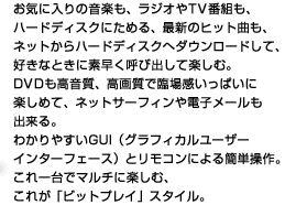 音楽も、映像も、ネットも、リモコンひとつで、わがままに操る。これからのAVスタイル「ビットプレイ」。