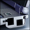 ネットワーク(100BASE-TX/10BASE-T)に直接接続できるネットワークコネクターを装備。LAN接続やADSLやケーブルテレビ回線などのブロードバンド回線への接続も手軽に行えます。また、最大56kbps*(V.90/K56flex)の高速モデムも内蔵しているので、付属のテレホンコードで電話回線と接続すれば、出張先のホテルから電子メールも可能です。