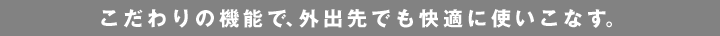 軽快に持ち歩けるコンパクトボディを追求。約259×27.8(最薄部。最厚部は32.0)×194mm*のボディサイズ、付属バッテリー(L)を装着した状態でも、軽量約1.26kgの小型化を実現しました。バッグに入れて軽快に連れ出せます。