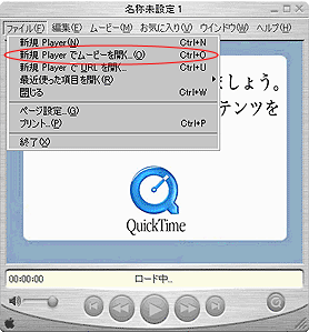 2-1 ファイル(F)をクリックして「新規 プレーヤーでムービーを開く」をクリックします。 |