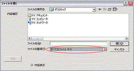 | | Step 2-2 「ファイルの種類」のプルダウンメニューから「すべてのファイル」を選択してください。 |