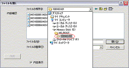 | | Step 2-3 再生するファイルのあるフォルダを指定します。ファイルは[MQ_ROOT]-[***MQV01]のフォルダに記録されています。