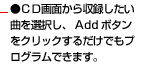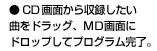録音画面を使って、お手持ちのCDからMDへの音楽録音が実行可能。操作は、録音したい曲をCD画面からドラッグし、MD画面にドロップするだけの手軽さでプログラムは完了。しかもディスプレイ画面の曲名一覧をモニターしながら、より明確に操作できます。また、MD888Wでは、録音モード画面でMD to MDの音楽録音も実行可能です。