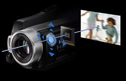 Optical SteadyShot (Active Mode) employs a 10x wider camera shake correction angle than conventional image stabilisers to reduce camera shake even in footage taken while walking. Now you can shoot smoother movie footage while chasing children or strolling around sightseeing.