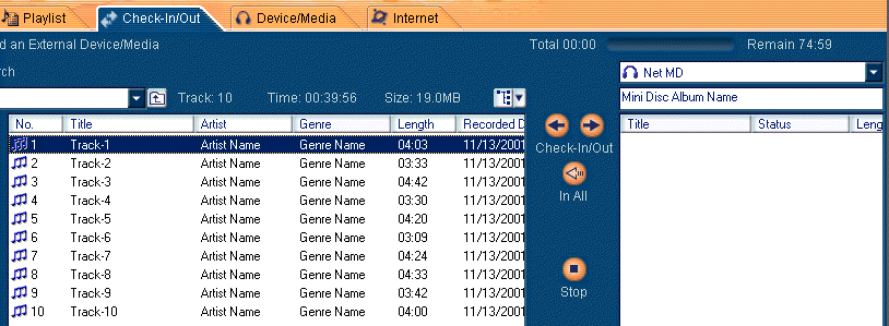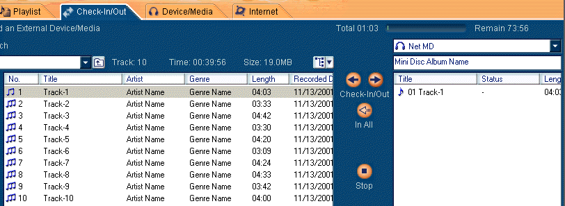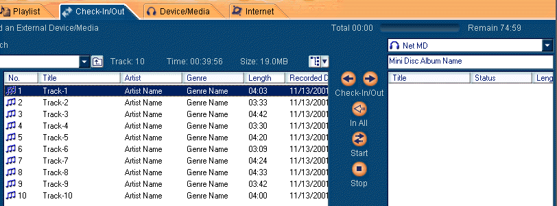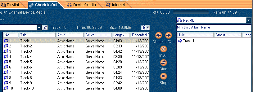 Select the music content("Track-1" in this case) that you want to check-out from the playlist managed in OpenMG Jukebox.