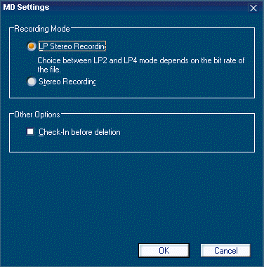 The delete setting of the checked-out music contents can be performed when the music contents managed by OpenMG Jukebox are checked out to MD.