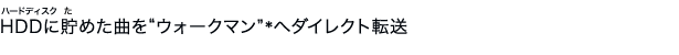 本体前面のUSB端子にUSBケーブル(別売)を接続して、ハードディスクへ貯(た)めた曲を“ウォークマン”やMP3対応デジタルミュージックプレイヤー*へ高速転送。