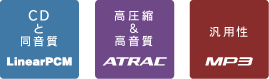 CDの音楽データを圧縮せずにそのままデジタル化するリニアPCM形式に対応。CDと同音質のままHDDへの録音を実現します。また、汎用性が高いMP3形式やATRAC形式での録音もできるので、幅広いリスニングスタイルを可能にします。 |