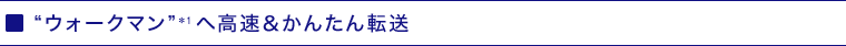 HDDに貯めた音楽をワンボタンで“ウォークマン”*1へ高速転送。さらに転送時には、まだ転送していないアルバム*2を自動で転送する「かんたん転送」と、今聴いている曲やアルバムを転送する「標準転送」を選択できます。
