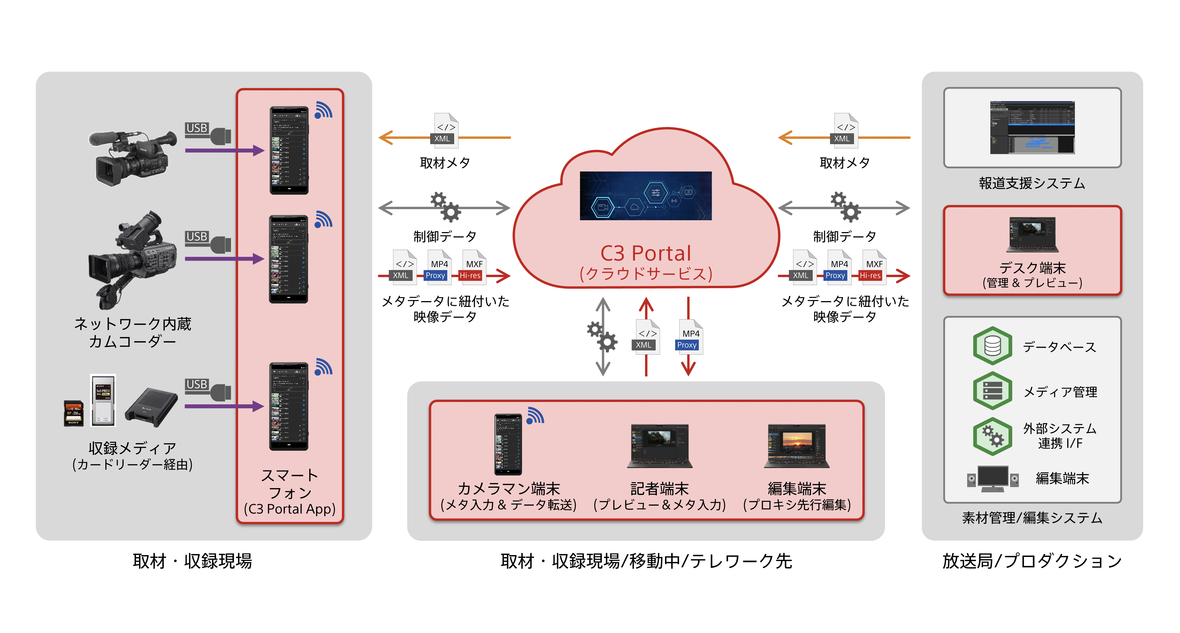 ソニーは、パブリッククラウド型のパッケージソリューション(SaaS※1)である、カメラ連携クラウドサービス「C3 Portal(シースリーポータル)」の提供を開始します。本サービスは、現場で撮影された素材を、スマートフォンを介して効率的にクラウドへ転送できるなど、映像制作の迅速化をサポートする一連の機能を搭載しています。