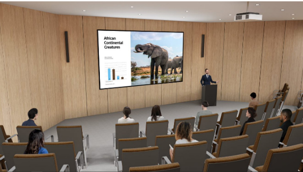 『SLS-1A』は、最大6台※2まで連結可能で、縦配置と横配置の両方に対応しています。音を届ける方向や角度を専用PCアプリケーションで制御できるので、設置する場所の広さや視聴者の位置に合わせて自在に音場設計が可能です。本機は、意図通りのビームコントロールで広い範囲に明瞭な音を届けることができるので、広い場所で多数の人が最適な視聴ができる音場を生成できます。さらに、ディスプレイの画面内から音が出ているような音響設計が可能なため、100V型の4K業務用ディスプレイ ブラビア®やプロジェクター、Crystal LED といった大画面ディスプレイと組み合わせることで、画音一体となる映像コミュニケーションを実現します。