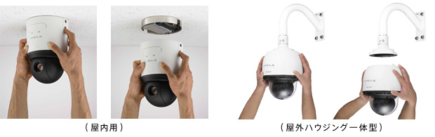 屋外に設置可能な屋外用のハウジングと一体型になっているため、ハウジング取り付けの手間を