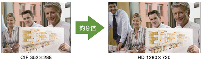720pHD映像での通信を実現しており、PCS-XA80は最大10,240kbps、PCS-XA55は最大4,096kbpsの通信速度でのなめらかな動きを再現した高精細なHD映像を送受信できます。